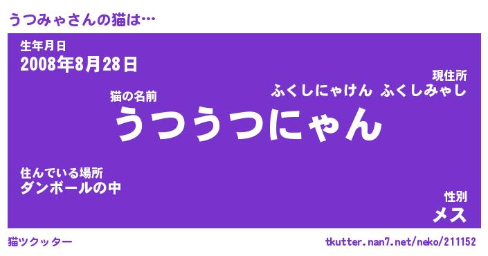 | ファンタジー風あだ名 | 『ウツフェル』『エターナルウツミャー』 |