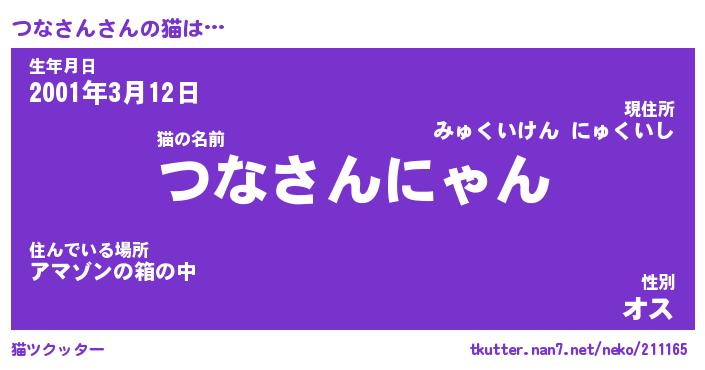 | ファンタジー風あだ名 | 『ツナフェル』『エターナルツナサンー』 |