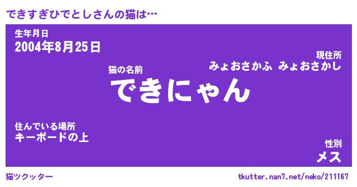 | 生年月日? …「くろねこ」 | 8月01日 10:16 |