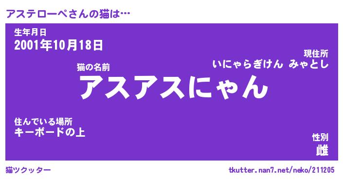 | 生年月日? …「くろねこ」 | 8月01日 10:16 |
