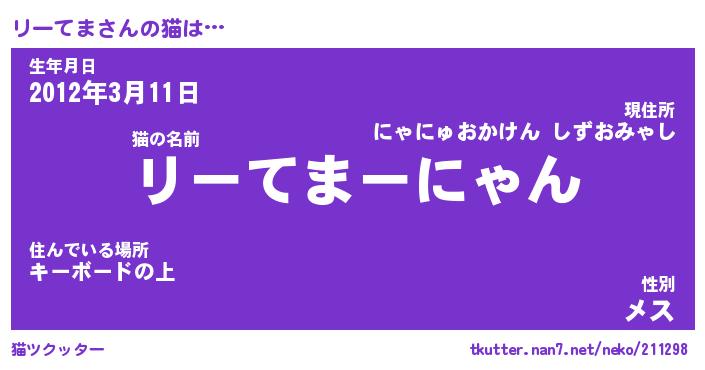 | 意味不明あだ名 | 『ペロリンリーてま』『永久保存リーてま』 |