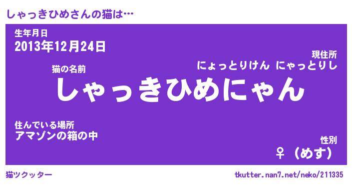 | 男性向けラノベタイトル風あだ名 | 『しゃっきひめの憂鬱』 |