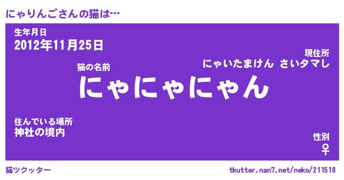 | ファンタジー風あだ名 | 『ニャフェル』『エターナルニャリンゴー』 |