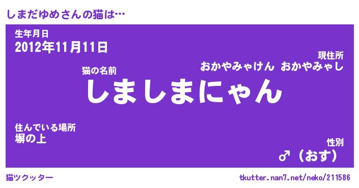 | ファンタジー風あだ名 | 『シマフェル』『エターナルシマダユメー』 |
