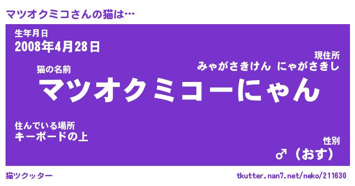 | 欧米人風あだ名 | 『マイケルマツオクミコ』 |