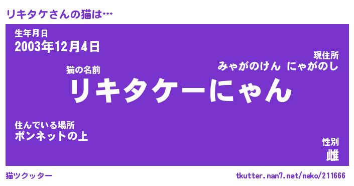 | 意味不明あだ名 | 『ペロリンリキタケ』『永久保存リキタケ』 |