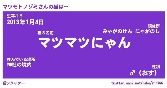 | 2回繰り返すあだ名 | 『マツマツ』『ママツツ』『いらいら』 |