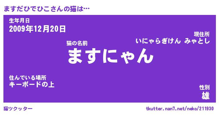 | ヘコむあだ名 | 『ますにー』『つくし』『ますを』 |