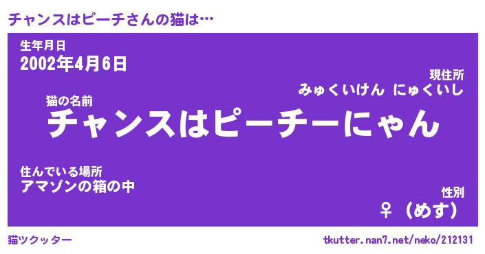 | ツイッター | チャンスはピーチさんのツイッターID『fukuyoka_man』 |