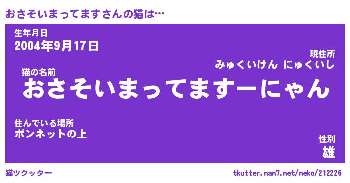 | 生年月日? …「くろねこ」 | 8月01日 10:16 |