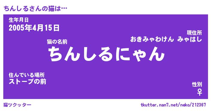 | 男性向けラノベタイトル風あだ名 | 『ちんしるの憂鬱』 |