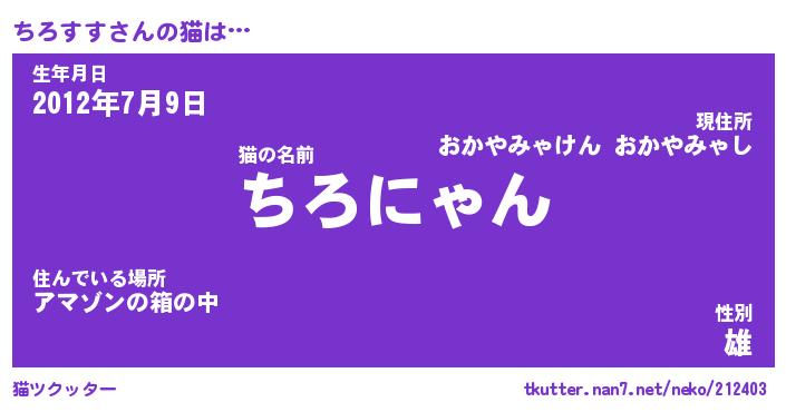 | 生年月日? …「くろねこ」 | 8月01日 10:16 |