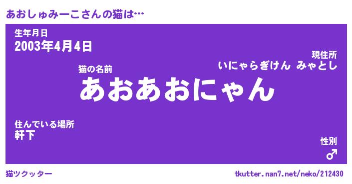 | 欧米人風あだ名 | 『マイケルあおしゅみーこ』 |