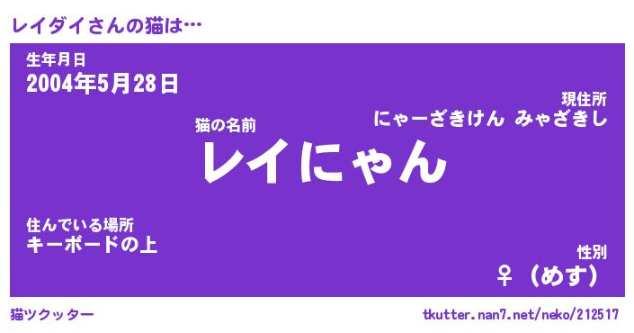 | ヘコむあだ名 | 『レイにー』『つくし』『レイ太郎』 |
