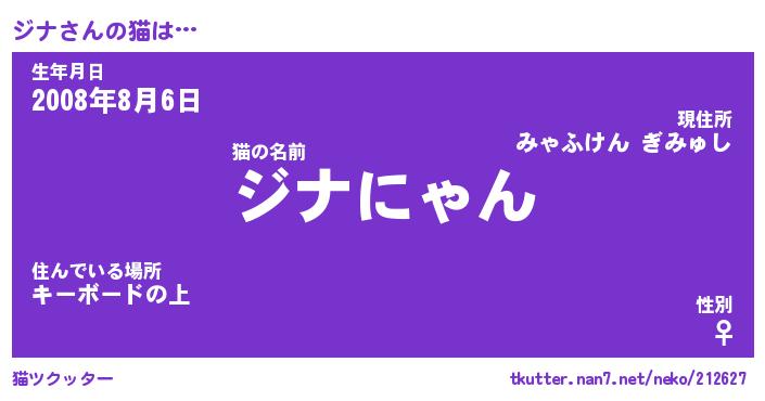 | ファンタジー風あだ名 | 『ジナフェル』『エターナルジナー』 |