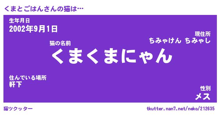 | ポケモン風あだ名 | 『クマチュウ』『クマトダネ』 |