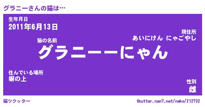 | 意味不明あだ名 | 『ペロリングラニー』『永久保存グラニー』 |