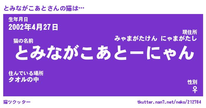 | 生年月日? …「くろねこ」 | 8月01日 10:16 |