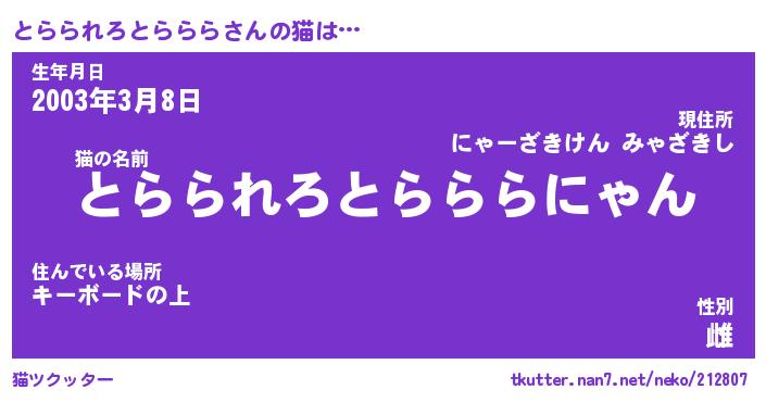 | 生年月日? …「くろねこ」 | 8月01日 10:16 |