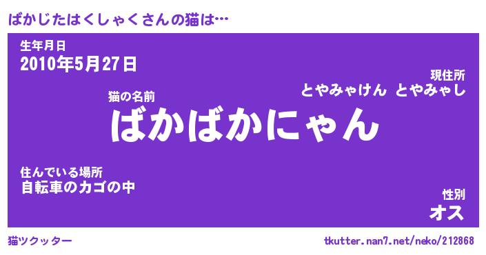 | ツイッター | ばかじたはくしゃくさんのツイッターID『katatsumuri_idle』 |