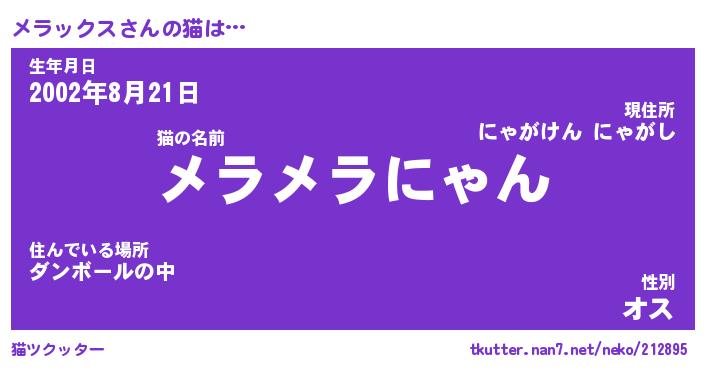 | ツイッター | メラックスさんのツイッターID『namakemono_star』 |