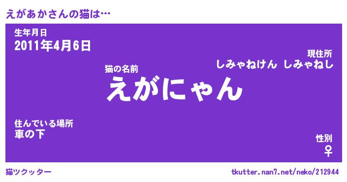 | ヘコむあだ名 | 『えがにゅー』『酢こんぶ』 |
