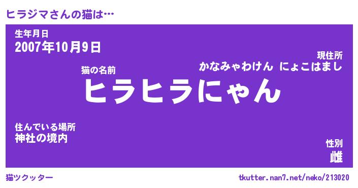 | 意味不明あだ名 | 『ペロリンヒラジマ』『永久保存ヒラジマ』 |