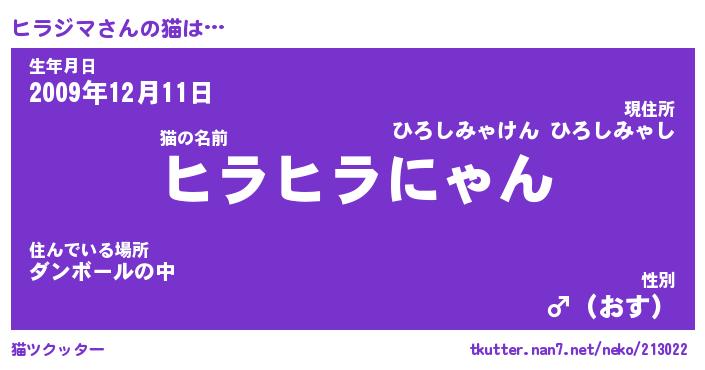| 意味不明あだ名 | 『ペロリンヒラジマ』『永久保存ヒラジマ』 |