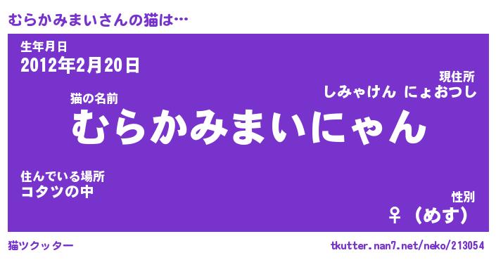 | 女子向けラノベタイトル風あだ名 | 『(仮)むらかみまいのやんごとなき事情』 |