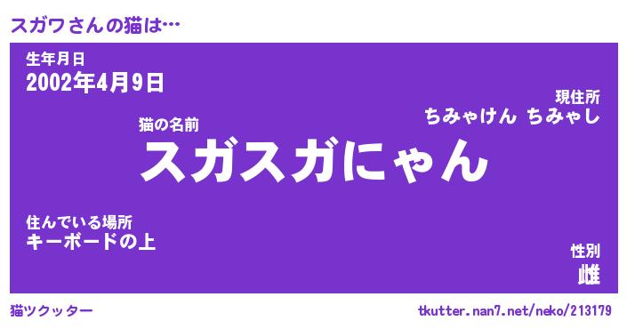 | ポケモン風あだ名 | 『スガチュウ』『スガワダネ』 |