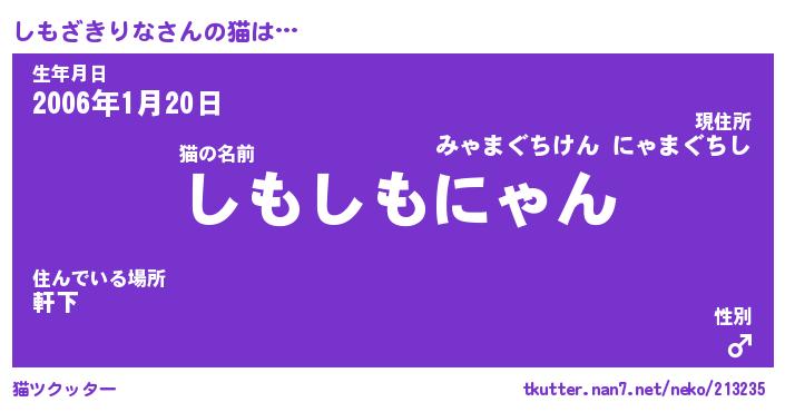 | 2回繰り返すあだ名 | 『しもしも』『ししもも』『ぬめぬめ』 |