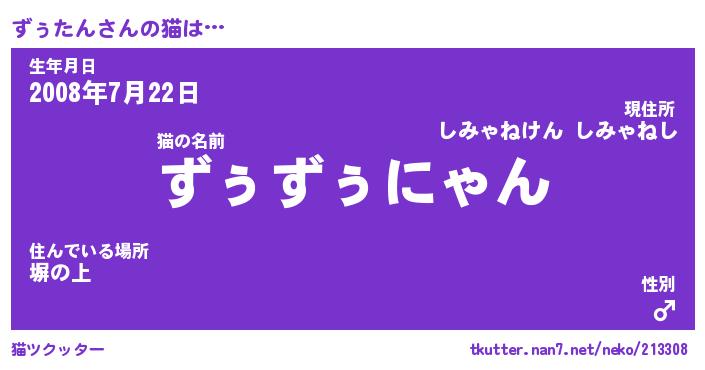 | ポケモン風あだ名 | 『ズゥチュウ』『ズゥタダネ』 |