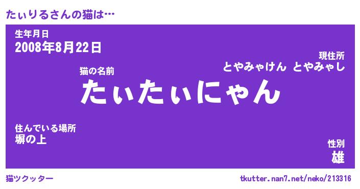 | ヘコむあだ名 | 『たぃにー』『牛乳』『たぃ太郎』 |