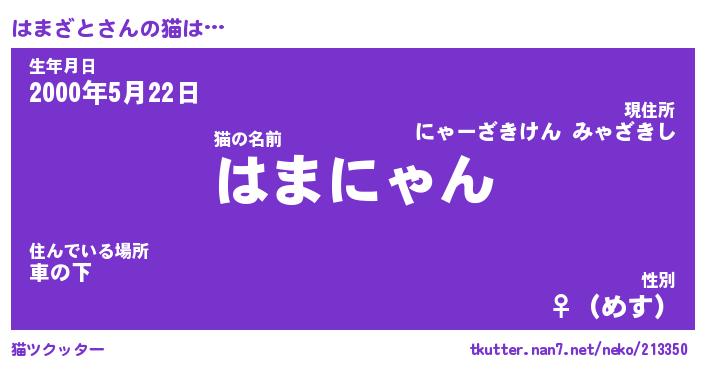 | ポケモン風あだ名 | 『ハマチュウ』『ハマザダネ』 |