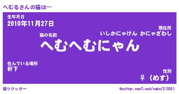 | 2回繰り返すあだ名 | 『へむへむ』『へへむむ』『いらいら』 |