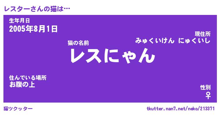 | ポケモン風あだ名 | 『レスチュウ』『レスタダネ』 |