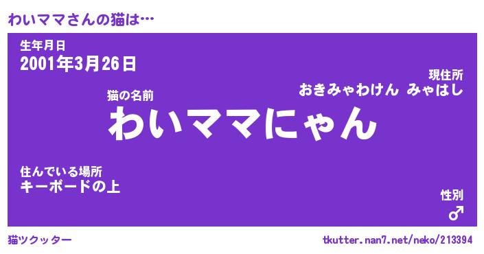| 意味不明あだ名 | 『ペロリンわいママ』『永久保存わいママ』 |