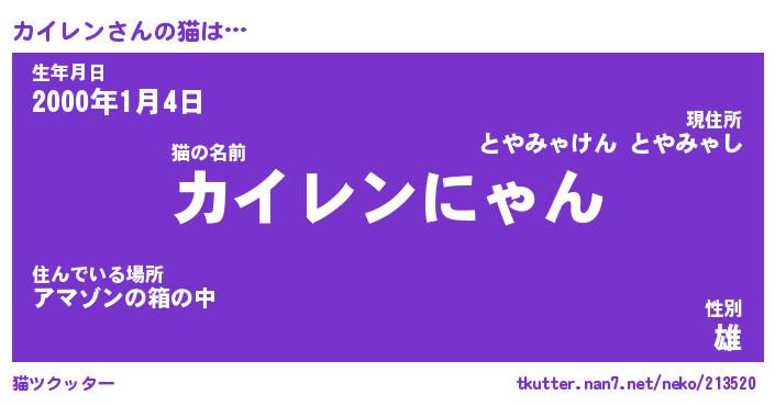 | 男性向けラノベタイトル風あだ名 | 『カイレンの憂鬱』 |