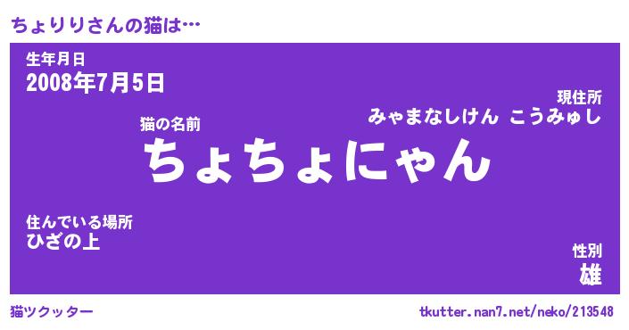 | ポケモン風あだ名 | 『チョチュウ』『チョリダネ』 |