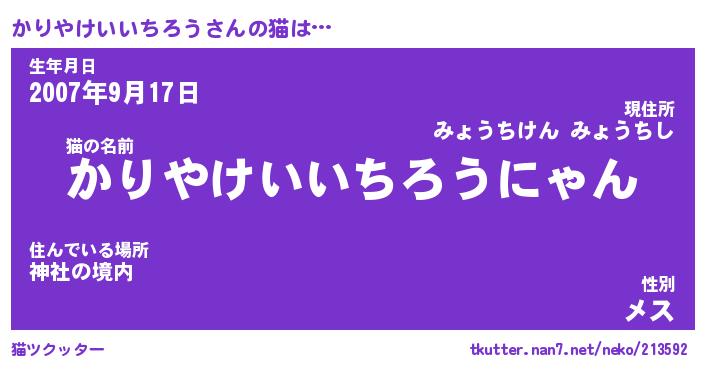 | 男性向けラノベタイトル風あだ名 | 『かりやけいいちろうの憂鬱』 |
