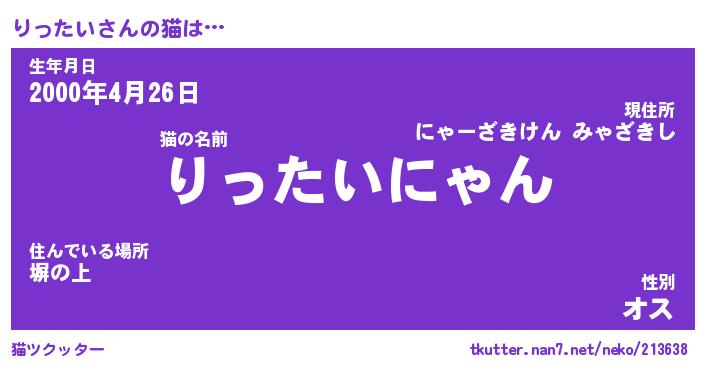 | 生年月日? …「くろねこ」 | 8月01日 10:16 |