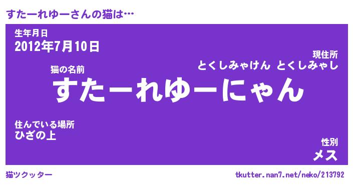 | 恥ずかしいあだ名 | 『プリティーすたーれゆー』『すたっちょ』 |