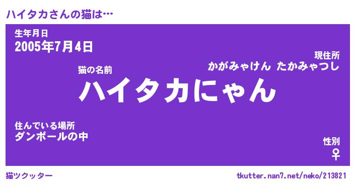 | 意味不明あだ名 | 『ペロリンハイタカ』『永久保存ハイタカ』 |