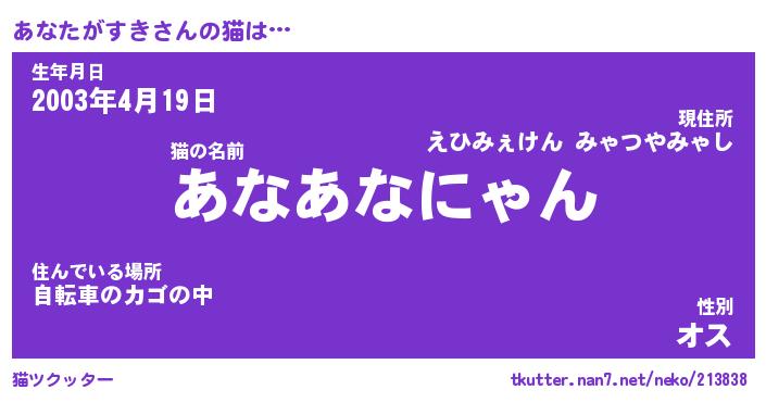 | 生年月日? …「くろねこ」 | 8月01日 10:16 |
