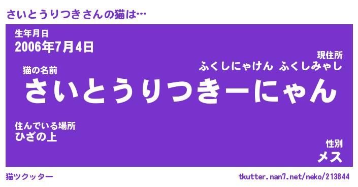 | 生年月日? …「くろねこ」 | 8月01日 10:16 |