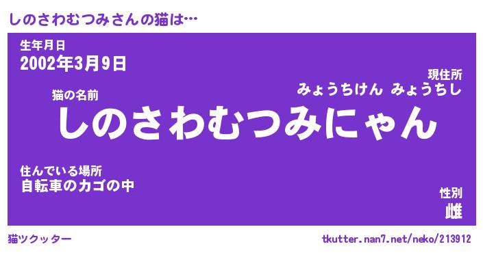 | 男性向けラノベタイトル風あだ名 | 『しのさわむつみの憂鬱』 |