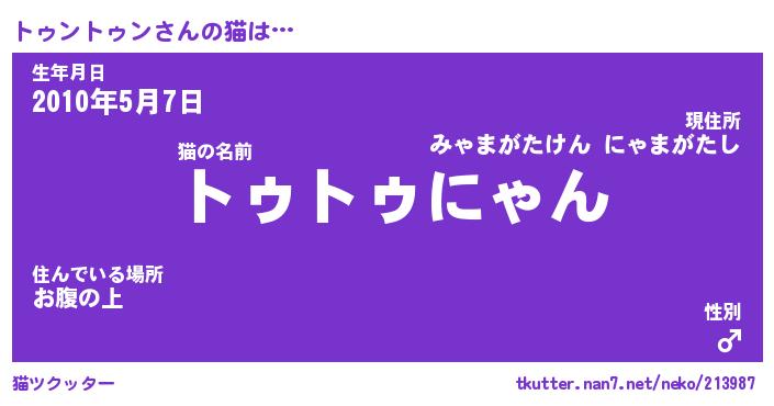 | 2回繰り返すあだ名 | 『トゥトゥ』『トトゥゥ』『からから』 |