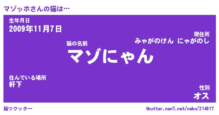 | 意味不明あだ名 | 『ペロリンマゾッホ』『永久保存マゾッホ』 |