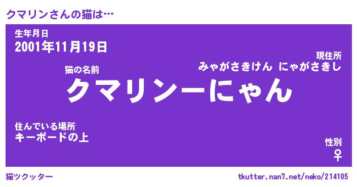 | ファンタジー風あだ名 | 『クマフェル』『エターナルクマリンー』 |