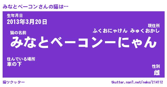 | 男性向けラノベタイトル風あだ名 | 『ミナトベーコンアートオンライン』 |